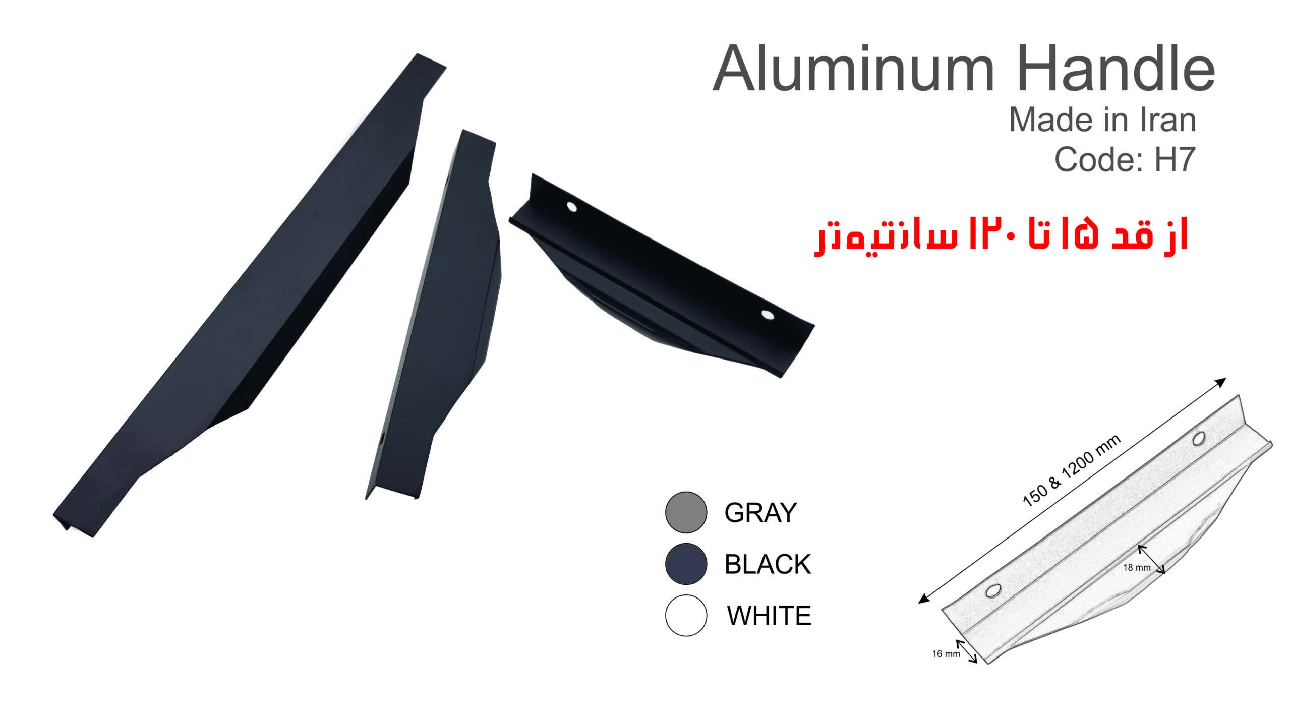 آلومینیوم به دلیل سبکی، دوام و مقاومت در برابر زنگ زدن، گزینهای مقرونبهصرفه و عملی است. این متریال اغلب برای ساخت دستگیرههای مدرن و مینیمالیستی به کار میرود و میتواند در طیف گستردهای از پایانهای متفاوت مانند مات یا براق عرضه شود که انعطافپذیری زیادی در طراحی ارائه میدهد.